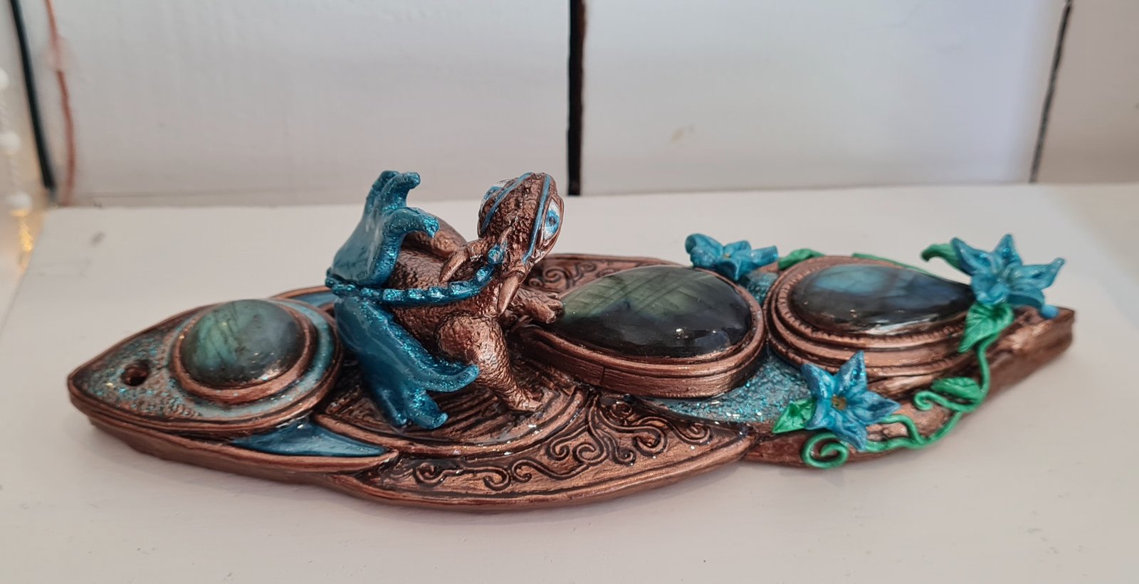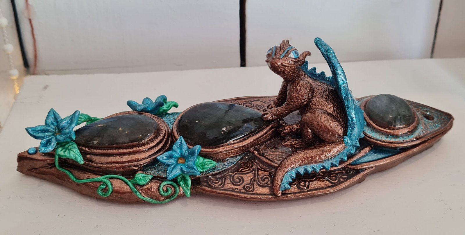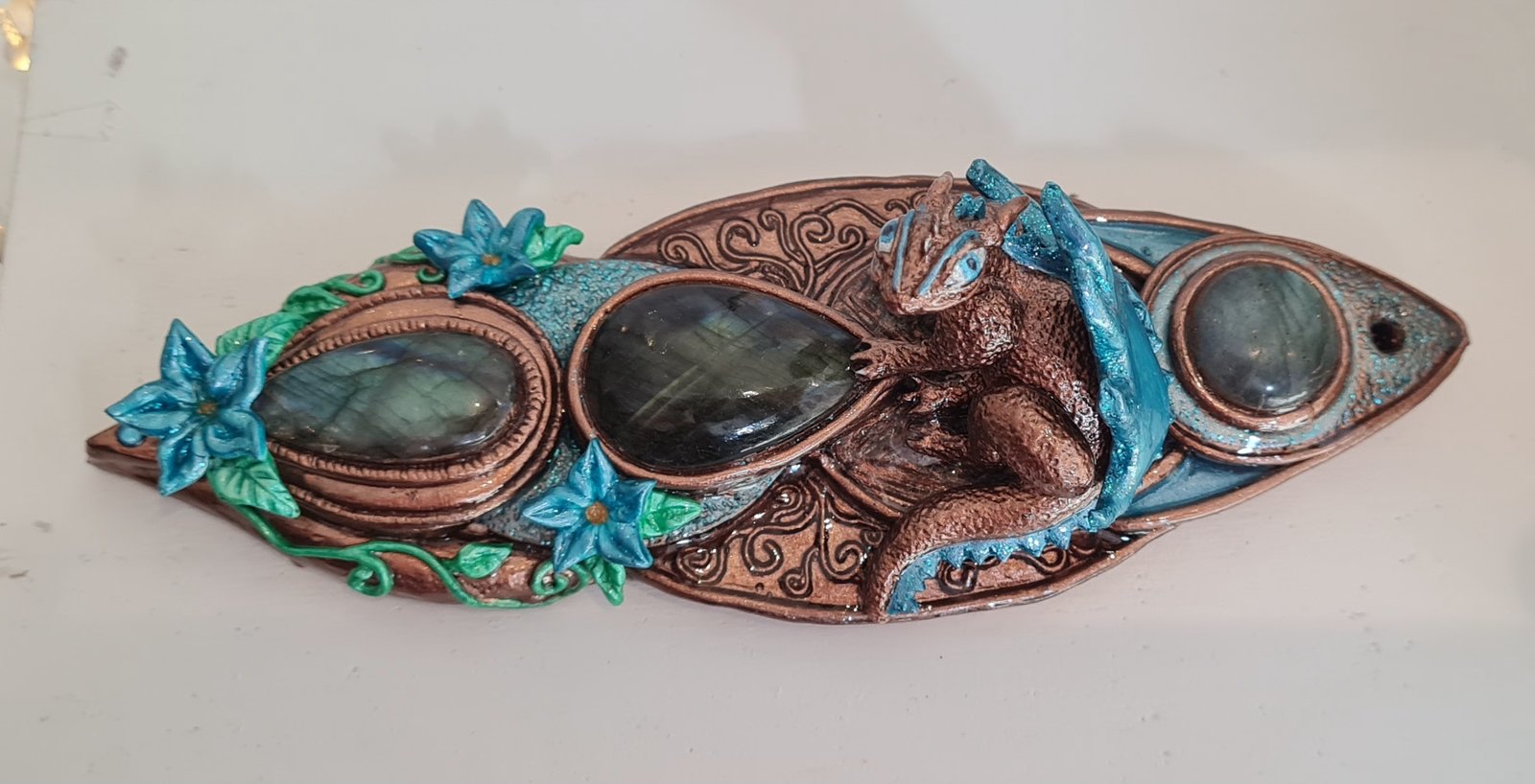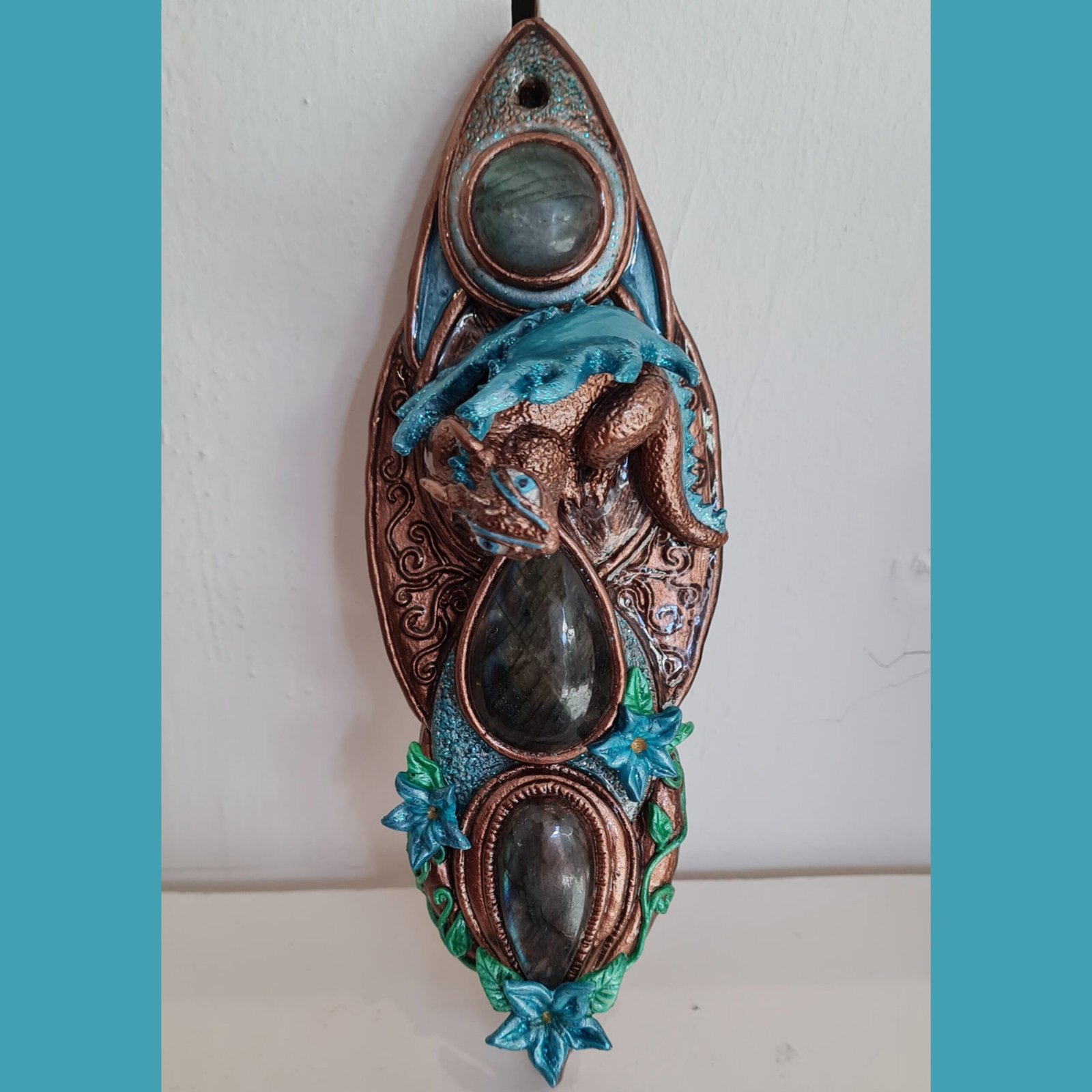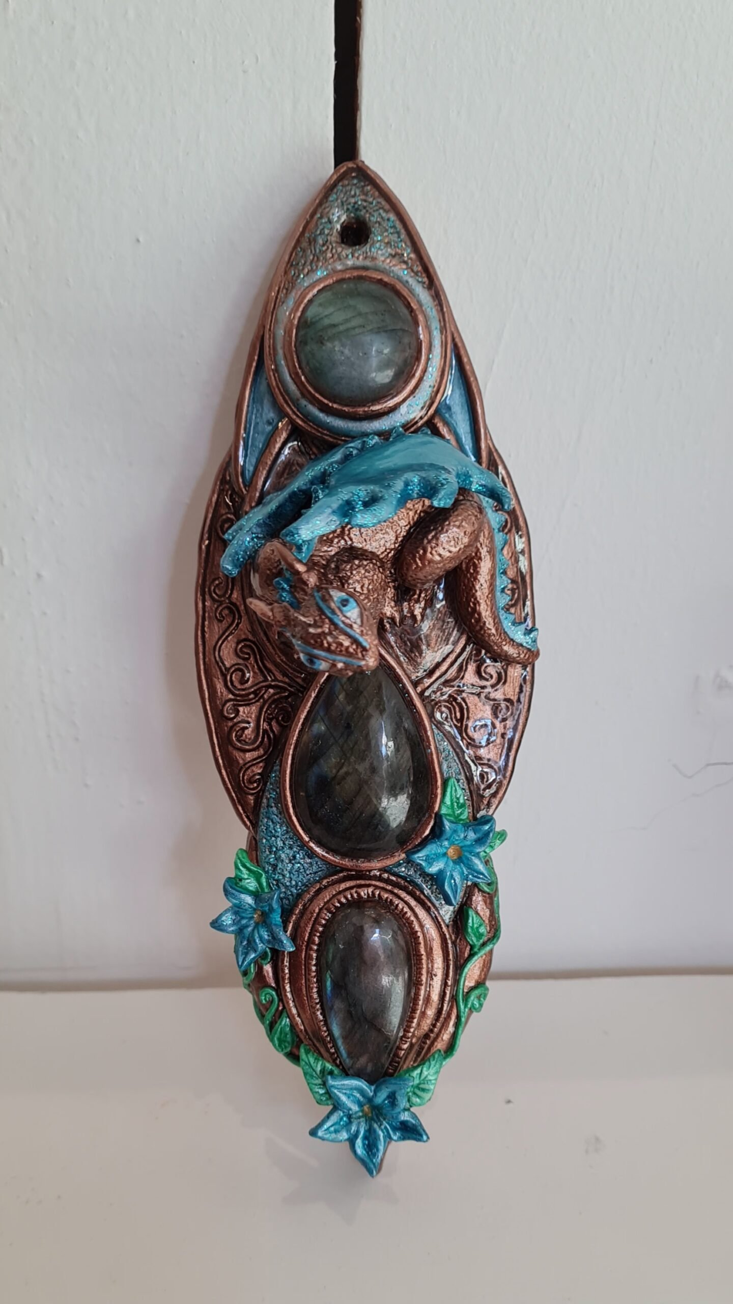 Talisman de protection Dragon Gualargan Talisman composé de trois cabochons de labradorite de qualité extra